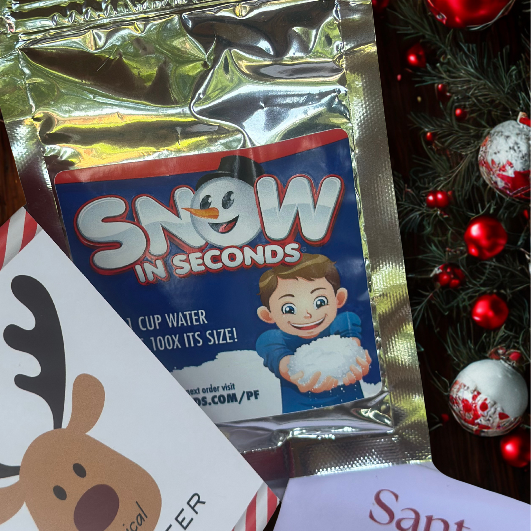 Santa’s Wood Footprint Stencil + Snow in Seconds Sample Pack